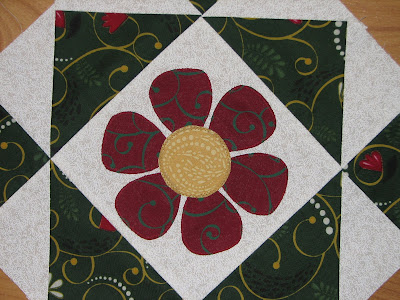 The older machine has a zigzag stitch, so I decided to work on the Christmas quilt applique blocks. This is the first time I have done machine applique. I had to go very slow; it took patience to stitch around all the curves and tight angles. But I don't think I did half bad!